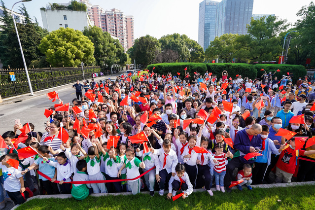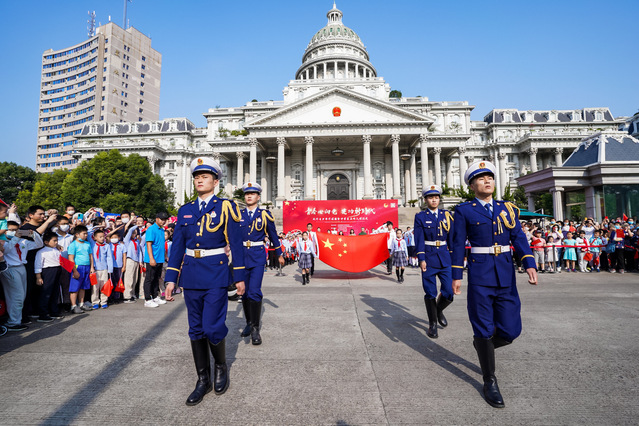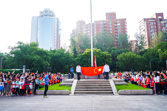 仪式进行的过程中穿插了精彩的节目:由上海莘光小学带来《国旗下的新少年》、由两位青年带来朗诵《读中国》、由实验小学的学生带来《我是一颗小星星》《红鸽子》大合唱等。