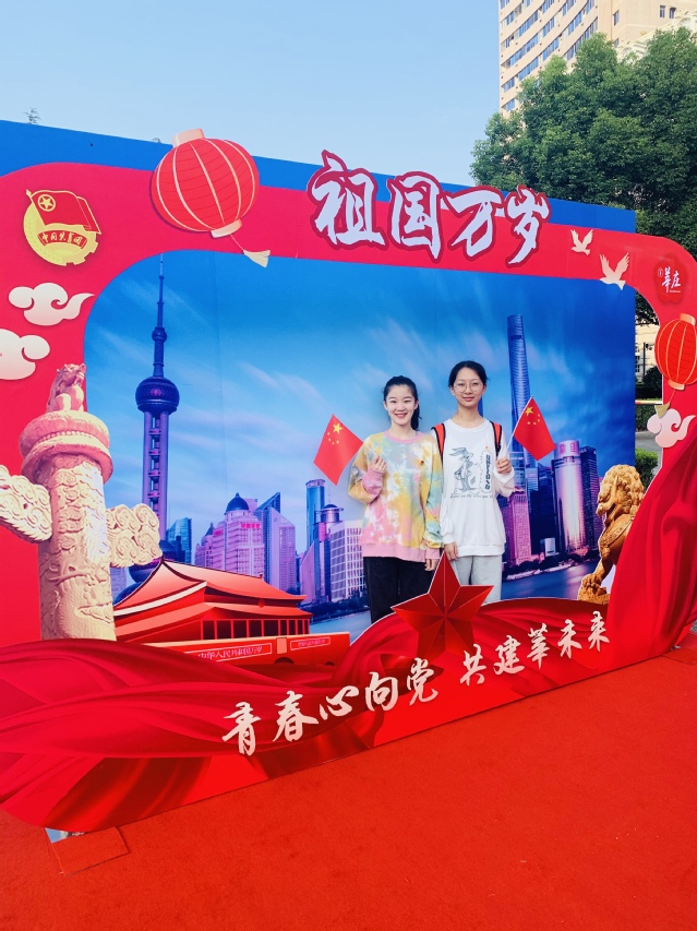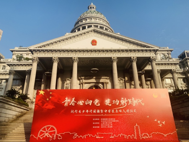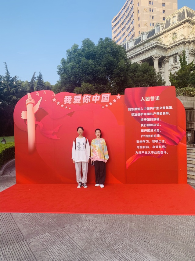 10月1日,我校团委副书记王璐老师带领蒋依庭(15戏音)、张瀚予(18木偶)两位新团员参加了闵行青少年升国旗暨中学生集体入团仪式。