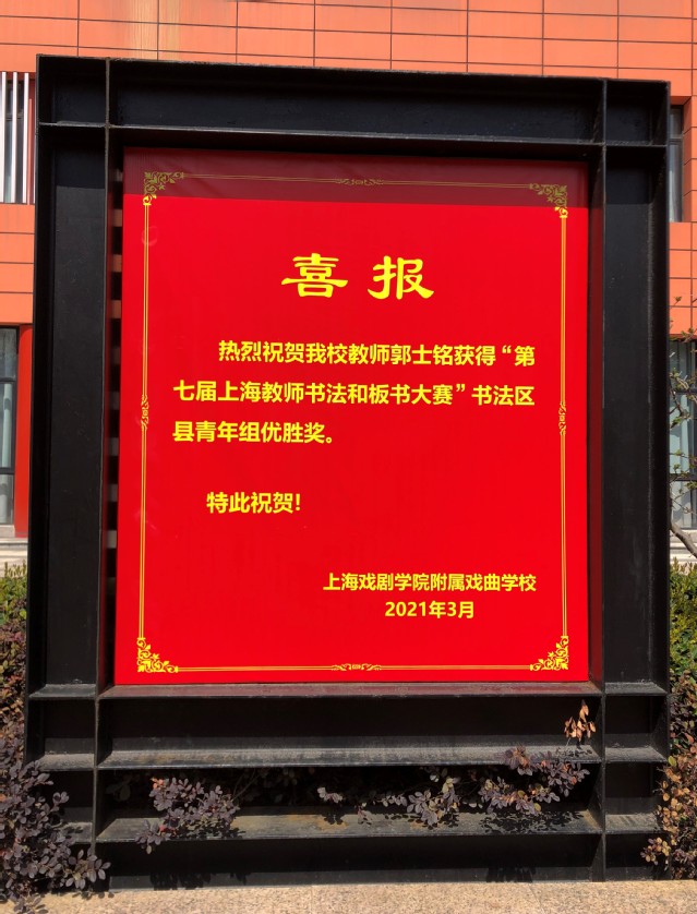 喜报!热烈祝贺我校教师郭士铭获得“第七届上海教师书法和板书大赛”书法区县青年组优胜奖