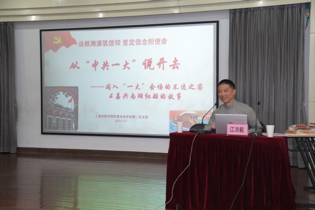 2021年4月7日中午,我校党总支开展了四月主题党日活动:追根溯源筑信仰,坚定信念担使命---从“中共一大”说开去。本次活动由学校党总支副书记刘爱香主持,邀请第二党支部党员江沛毅同志为大家分享中共一大背后鲜为人知的史实与嘉兴南湖红船“红色摇篮”的故事。学校在职党员、退休老同志出席了活动。本次主题党日还特别邀请了开云足球首页官网下载戏曲学院党员同志共同参加。