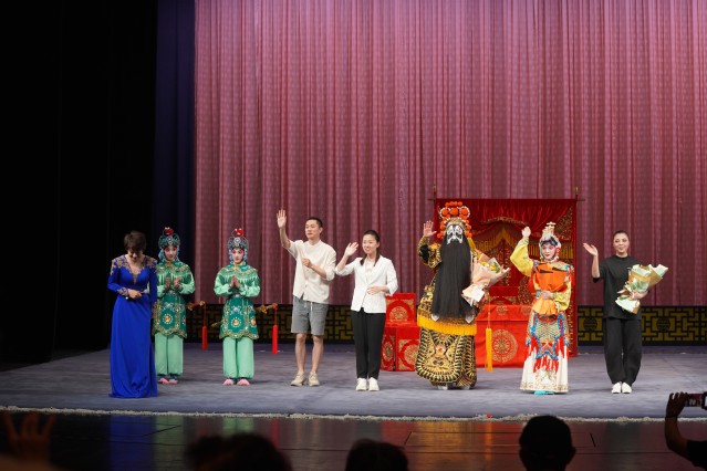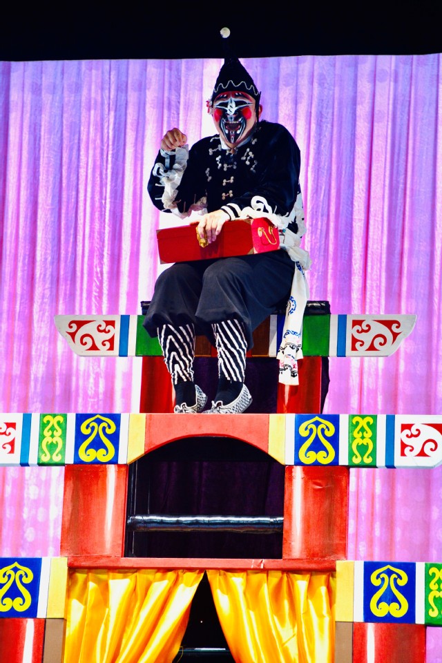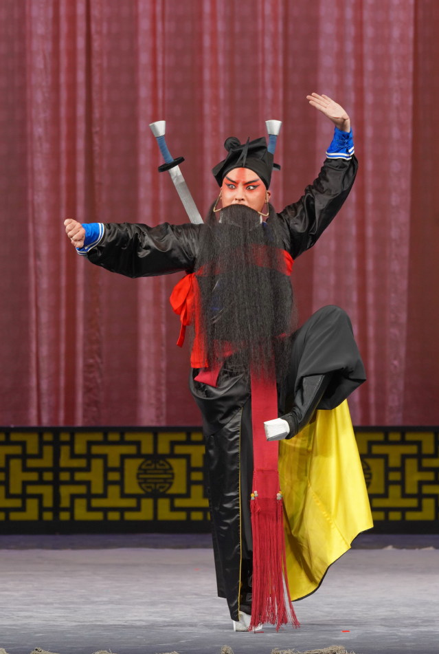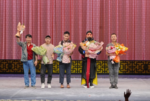 武生剧目《洗浮山》,由我校青年教师季永鑫饰贺天宝,盖叫天之孙、盖派艺术主要传承人张善元任艺术指导,该剧主要看武生演员综合表现,耍髯口、系大带、舞双刀,更兼具和同台演员武打把子技艺,以及翻转腾跃的武戏表演,使观众眼花缭乱、目不暇接,现场观众叫好四起掌声雷动,将最终的演出推向了高潮。