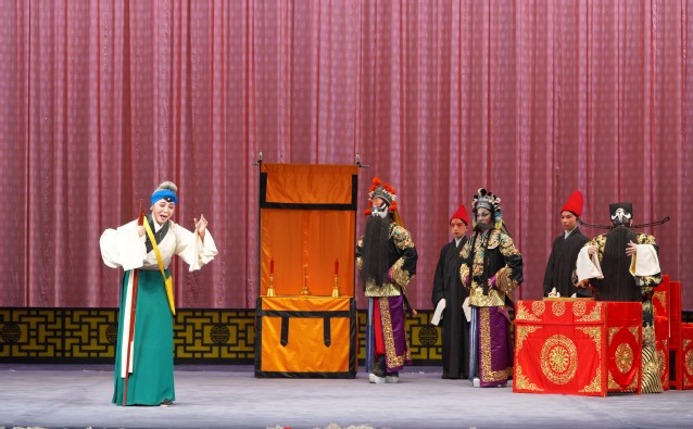 《遇皇后》是老旦、花脸主演的传统剧目,李后由我校青年教师陈韵竹饰演,包拯特邀上海京剧院国家二级演员耿露饰演,由著名京剧表演艺术家王梦云任艺术指导。脍炙人口的唱段和演员们铿锵有力的精彩演唱,使戏迷大呼过瘾。