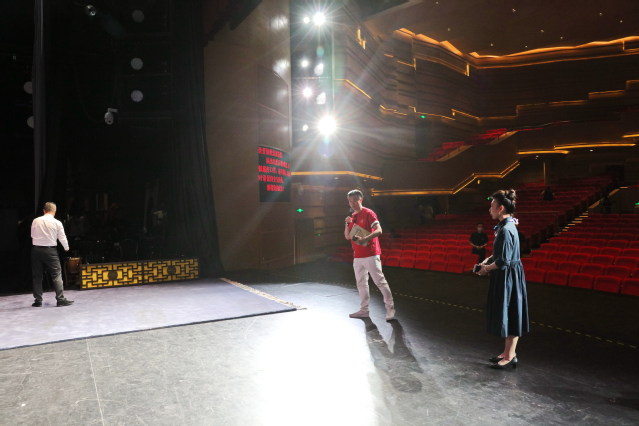 日场首先演出是《拾玉镯》,由我校青年教师李勤、戴国良和戏曲学院教师于博文联袂主演,此剧是唐禾香副校长“戏曲名师培育工作室”教学项目,由荀派花旦名家龚苏萍为工作室学员李勤进行传授,经过学、排、演过程,使李勤在花旦专业基础得到很大提高,身段、脚步,特别是眼神的运用,有了长足的进步。