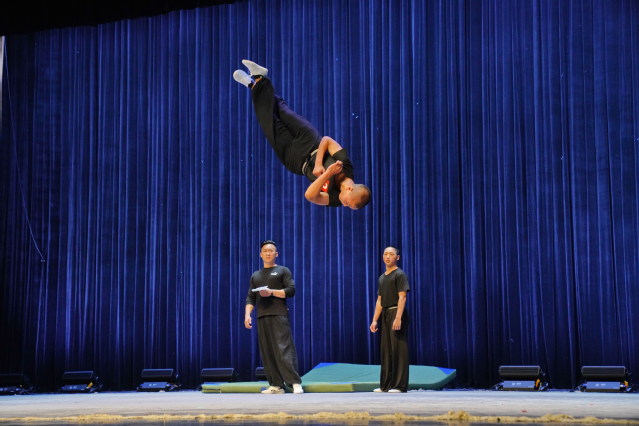 为期三天的考试,16武、17京、18京、19昆的考生们身着统一练功服,精神饱满,斗志昂扬,彰显出训练有素的风貌。整场考试过程中,台上,主教老师严谨规范,以饱满的热情喊出指令,带动着学生的积极性;考生沉着冷静,展示各类技巧,令人目不暇接。台下,评委们公平公正,一丝不苟地为每位考生评分;学生们凝神屏气,每遇精彩瞬间,则情不自禁为考生鼓掌助威。考场紧张有序,秩序井然。