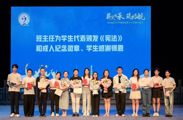 毕业典礼当天还举行了十八岁成人仪式。庄严而热烈的氛围中,全体毕业生在学校团委书记王璐老师的带领下进行了成人宣誓。在一项项充满仪式感的活动中,同学们铭记了自己的誓言,感受到了十八岁成长与责任相伴,梦想与感恩同行。通过成人仪式,让同学们懂得感恩思源,要成为一名无愧于时代、无愧于青春,有责任有担当的人,不断书写更辉煌的人生篇章!2024届全体师生、家长代表共同见证了这个美好的时刻。