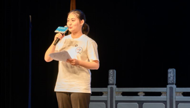 18戏音班姚毓霖同学作为学生代表发言,她表达了自己对母校的依恋之情,同时她倡议同学们要牢记校训,让青春在党和人民需要的地方绽放出最美丽的花朵。