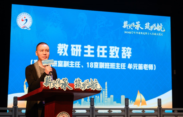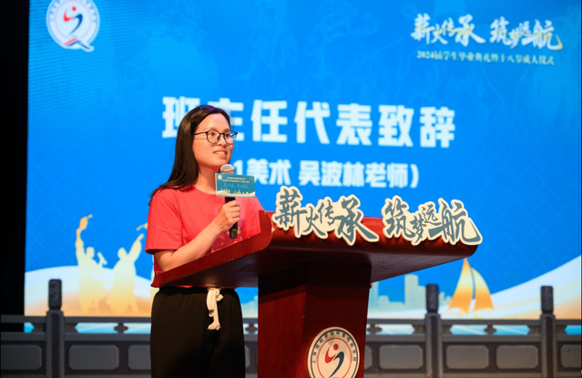 京剧教研室副主任、18京剧班班主任牟元笛老师和21美术班班主任吴波林老师作为教师代表发言,他们分别向2024届毕业生们送上了美好的祝愿。