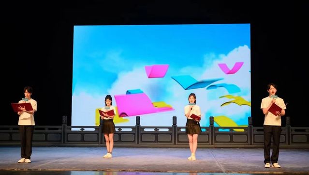 21话影班李唯宁、胡语溪、马安澜、张奇丰四位同学共同朗诵了《青春之诗》。