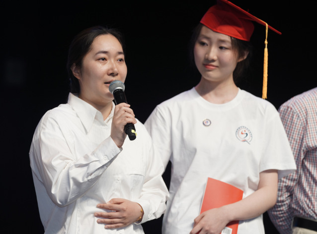 2019级昆剧班吕玮诚的妈妈周王芳作为今年毕业生家长代表发言。周女士首先感谢学校对孩子的悉心培养,师恩如山,希望2025届毕业生们能带着这份传承,继续在自己的专业里深耕。无论未来走向何方,都要铭记母校的教诲,将所学用于社会,为传承和发扬中华优秀传统文化贡献力量。