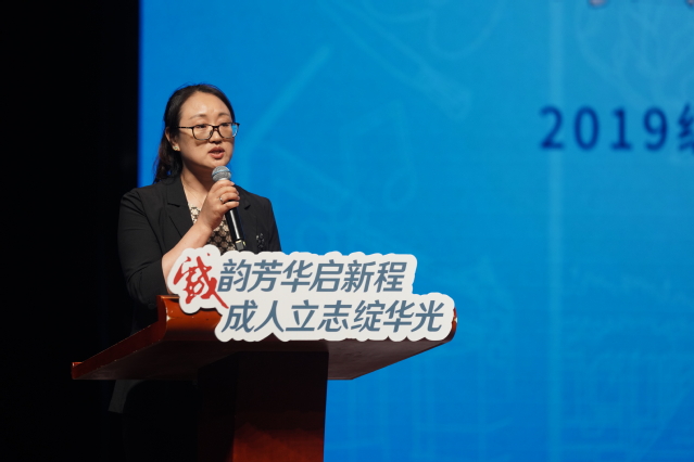 戏曲音乐教研室副主任丁佳老师作为本次毕业典礼的教师代表发言。丁老师很高兴能见证同学们这六年的成长,她表示,每一位同学都是中国传统艺术的学习者、继承者,也为同学们所取得的成绩感到骄傲。她为即将展翅高飞的学子们送上谆谆嘱托和真挚祝福,勉励大家传承戏曲艺术,勇担时代使命。