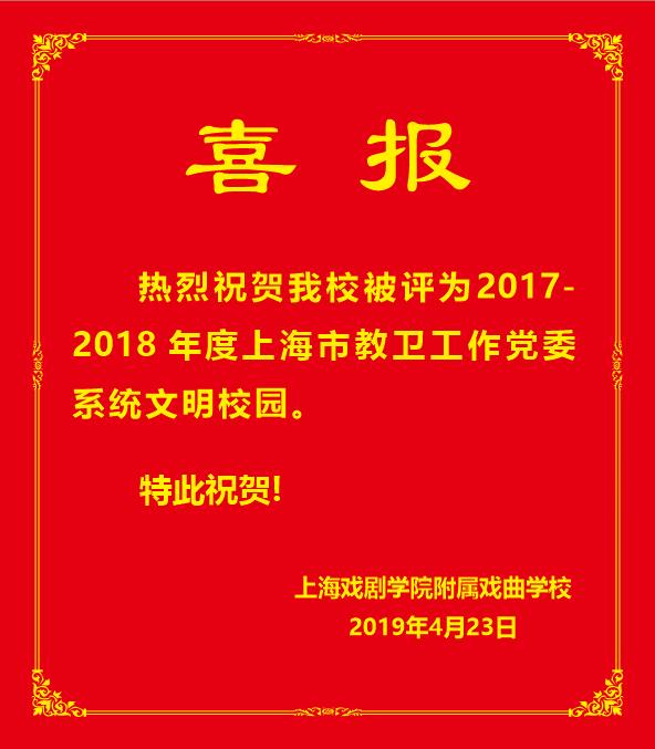 热烈祝贺我校被评为2017-2018年度上海市教卫工作党委系统文明校园