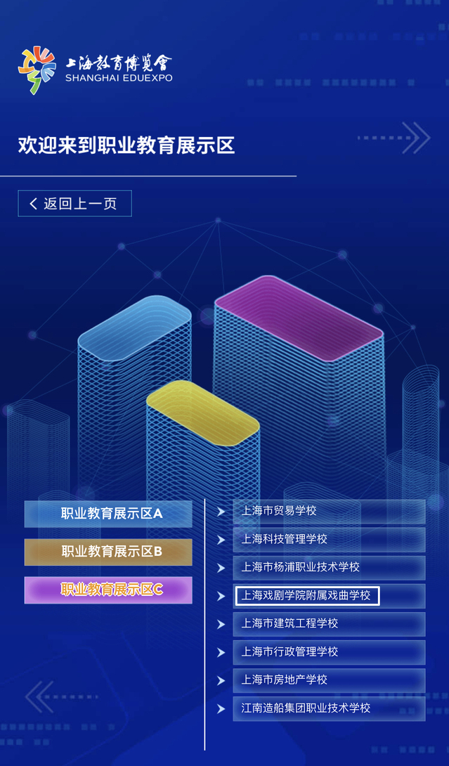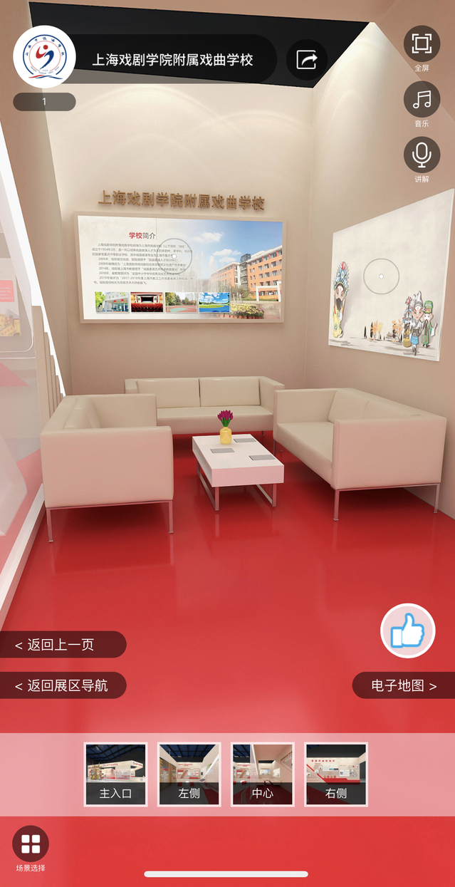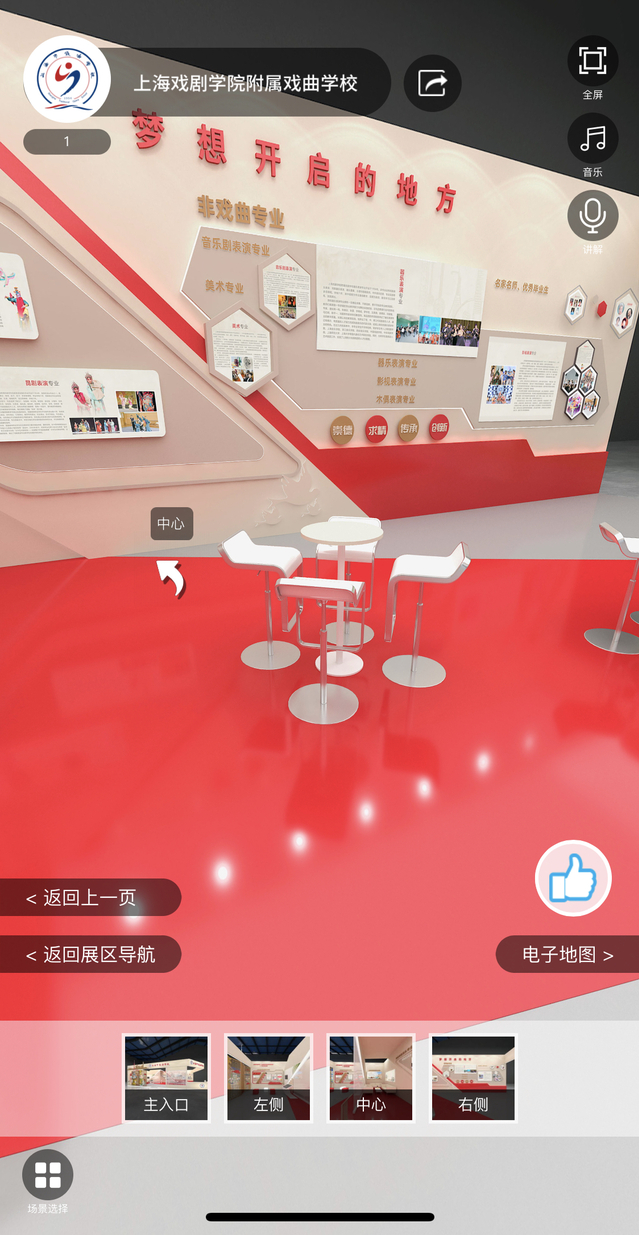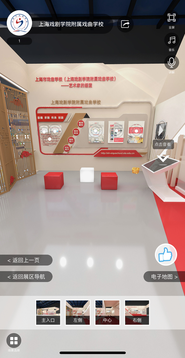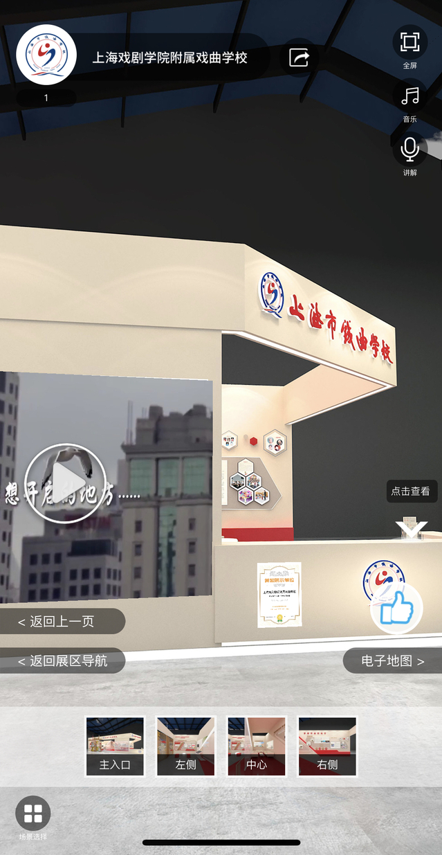 教博会期间上海市戏曲学校720度全景式虚拟展馆网址:https://edu-vrexpo.shedunews.com/zhongz41/?scene_id=54441697