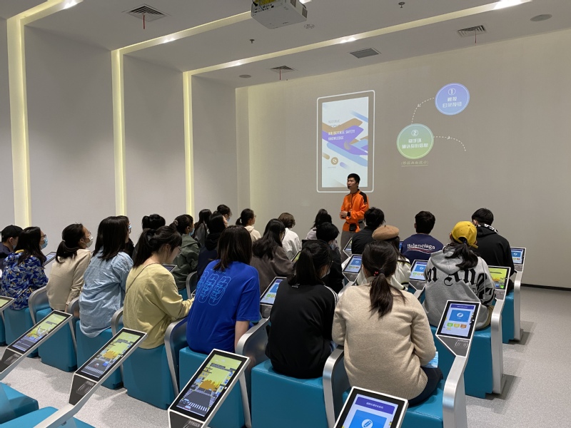 同学们先后进行了四个课程体验学习:轨道交通安全、道路交通安全、日常生活安全、紧急救护。大家通过观看视频、听取专业教师讲解、现场模拟体验,学习了各种安全实训工具的使用方法;了解了生活中可能存在的安全问题以及遇到轻微事故的处理办法。经过实训,更让我们知道了一些在平时生活中很难接触到的危险发生时要如何防范。比如:空难发生时如何进行避难、如何识别防空预警提示、如何佩戴防毒面具、大巴着火如何逃生、如何寻找家庭安全隐患、如何运用CPR进行心脏复苏等等一系列知识。