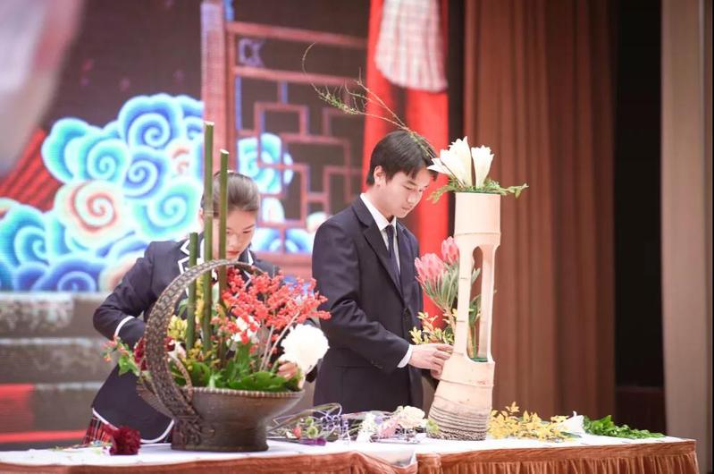 中国传统插花至今已有3000多年的历史。中国传统插花传承教育基地——上海市城市建设工程学校(上海市园林学校)学子的《花开盛世》表演,与国粹京剧结合,用插出来的盛世美景,向祖国表达衷心的祝福和赞美