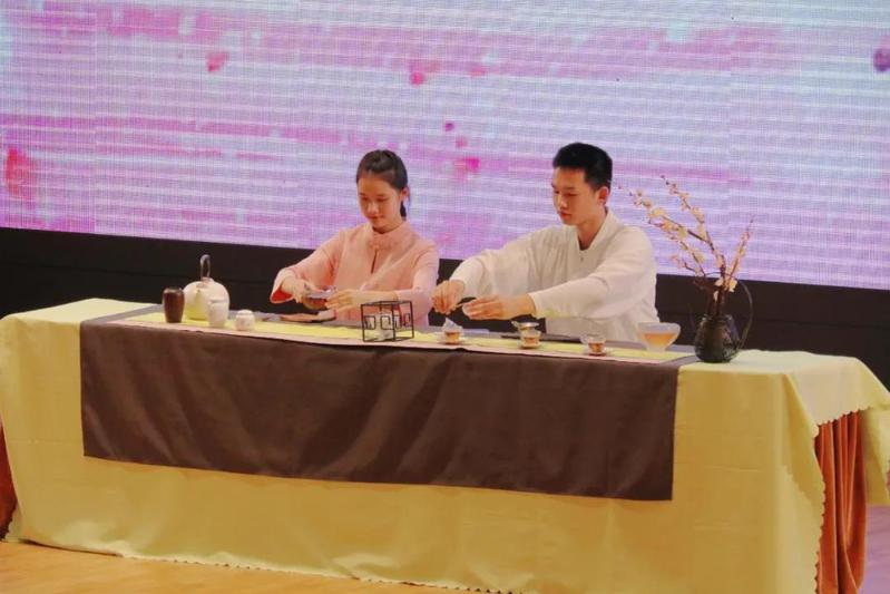 博雅茶韵传承教育基地——上海市商贸旅游学校的学子,现场冲泡以冬为主题设计的调饮茶:《踏雪寻梅》,让观众感受到茶文化中形式与精神的完美结合