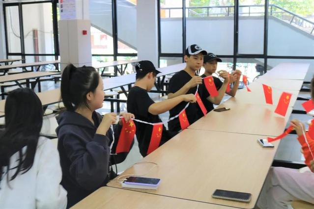 只见食堂一楼,一面面鲜艳的五星红旗迎风飘扬,处处洋溢着欢乐喜庆的氛围。本次“共享国庆喜面,同庆祖国华诞”国庆主题活动进一步加强爱国荣校主题教育,引导学生增强国家荣誉感和民族自豪感,将个人之“小我”融入国家之“大我”,用青春奋斗告白伟大祖国。