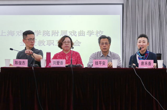 2019年9月2日下午,上海戏校全体教职工汇聚一堂,在图书馆报告厅召开了2019-2020学年(第一学期)全校教职工大会,学校校长、党总支书记钱平安,副校长、党总支副书记刘爱香,副校长唐禾香,副校长陈俊杰等校领导出席会议,会议由刘爱香主持。