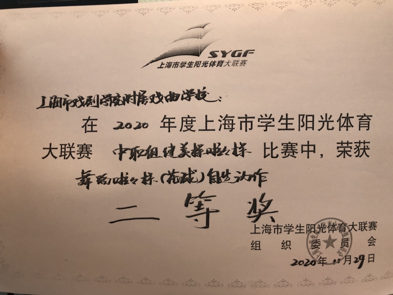 热烈祝贺我校学生在2020年度上海市学生阳光体育啦啦操比赛中荣获二等奖!