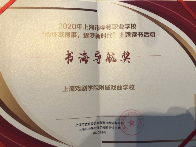 热烈祝贺我校获得2020年上海市中等职业学校“心怀家国事,逐梦新时代”主题读书活动书海导航奖