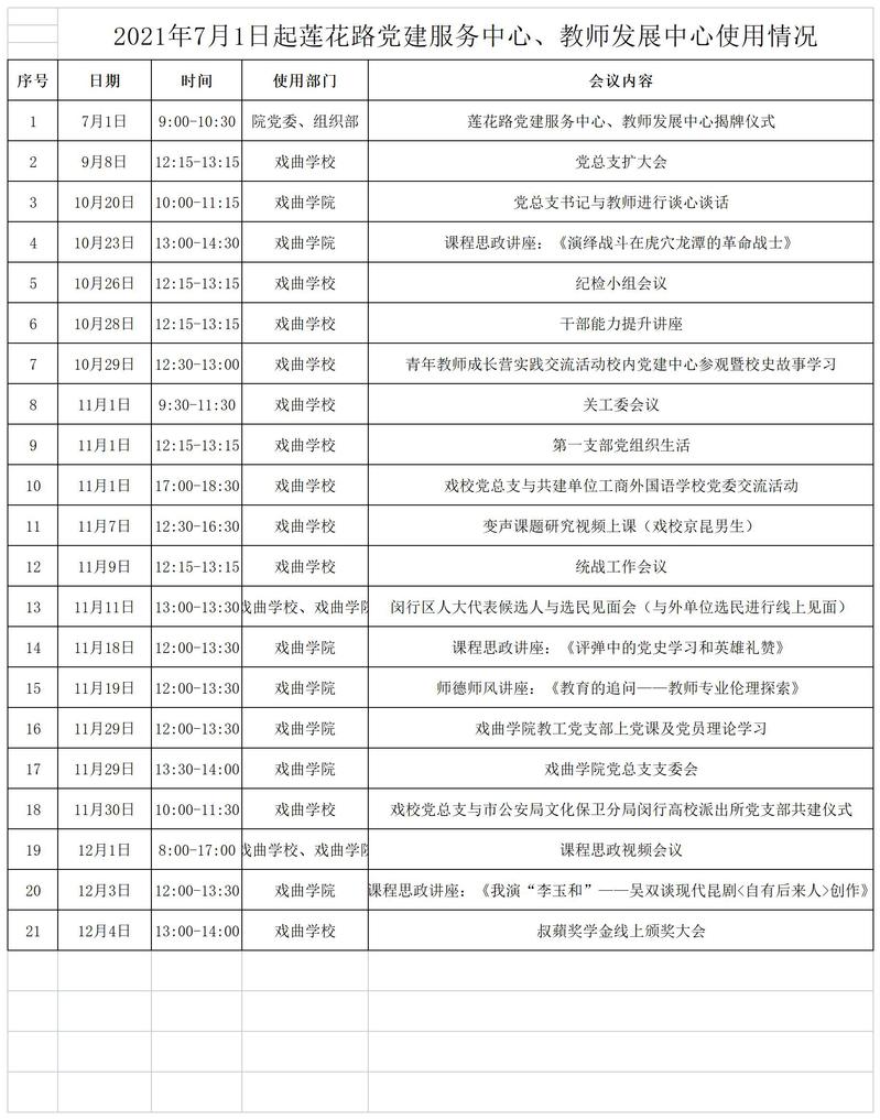 2021年7月1日起莲花路党建服务中心、教师发展中心使用情况