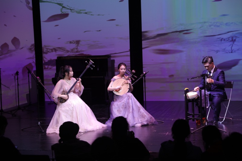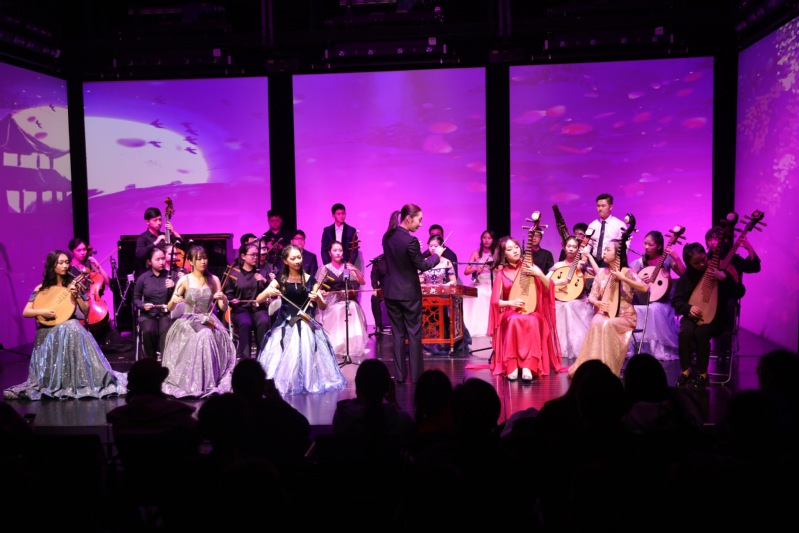 当晚,音乐会现场气氛热烈,舞美精致,在各专业老师精心指导下,15戏曲音乐班20位同学共同呈现一场具有民族韵味的音乐会,形式丰富多彩,涵盖独奏、重奏、小乐队、大乐队等多种形式,融合了京剧音乐、民乐,西乐的演奏。音乐会在《音韵律动》中拉开了帷幕,学生通过对肢体语言的理解,将内心的声音用不同的方法表达出来;京剧曲牌《夜深沉》,源于昆曲《思凡》中的曲牌“风吹荷叶煞”,在此曲中,作曲家大胆地把单一板式发展成行板,小快板,快板,垛板,极板等多版式的大型曲牌;而后“嘈嘈切切错杂弹,大珠小珠落玉盘”的琵琶独奏《虚籁》曲调静中有动,柔美秀丽;京剧《洪洋洞》选段“自那日”曲调婉转悠扬,深入人心;三弦与二胡重奏《十八板》充分融合了三弦铿锵有力的声音与二胡温文尔雅的音色;笛子独奏《幽兰逢春》乐曲采自昆曲音调,悠扬雅致,委婉抒情,赞美了兰花的清雅幽馨;二胡独奏《第二二胡狂想曲》由引子和六段速度迥异但风格统一的音乐组成,融入了二胡的多种演奏技法;中阮与乐队《凤凰花开》,旋律优美,热情洋溢;最后压轴的京剧锣鼓《雁荡山》,由曲牌和锣鼓的衔接组成,表达人物内心情感和烘托出战争时的激烈氛围,精彩迭起。