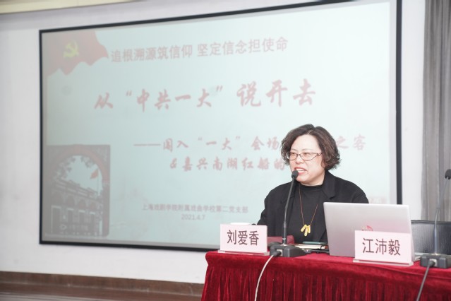 2021年4月7日中午,我校党总支开展了四月主题党日活动:追根溯源筑信仰,坚定信念担使命---从“中共一大”说开去。本次活动由学校党总支副书记刘爱香主持,邀请第二党支部党员江沛毅同志为大家分享中共一大背后鲜为人知的史实与嘉兴南湖红船“红色摇篮”的故事。学校在职党员、退休老同志出席了活动。本次主题党日还特别邀请了上海戏剧学院戏曲学院党员同志共同参加。