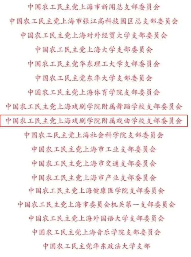 中国农工民主党上海戏剧学院附属戏曲学校支部委员会获评先进集体。