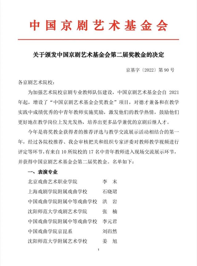 热烈祝贺我校教师石晓珺、郭元元获得“中国京剧艺术基金会第二届奖教金”。