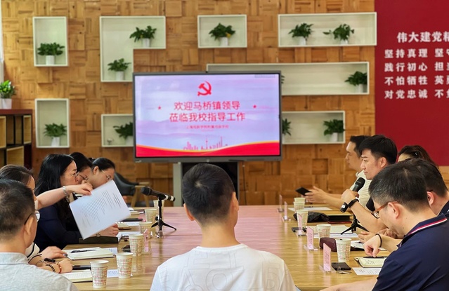 马桥镇领导一行首先走访了校园并进入课堂近距离了解学校教育教学开展情况。随后,在莲花路党建服务中心,双方召开了座谈会,就新时代下如何做好中华优秀传统文化的传承与创新进行了深入交流和探讨。