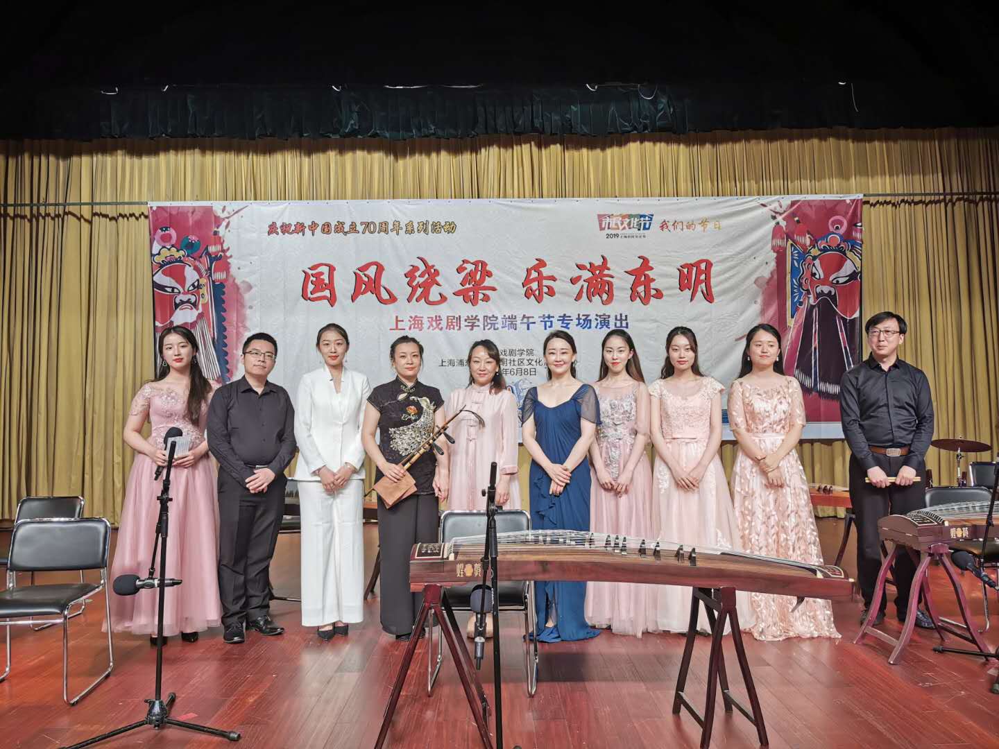 6月8日下午,为庆祝新中国成立70周年,由上海浦东新区东明社区文化活动中心主办的“国风绕梁 乐满东明——上海戏剧学院端午节专场演出”在东明社区文化活动中心圆满结束。我校戏曲学院10名师生参加了此次演出。