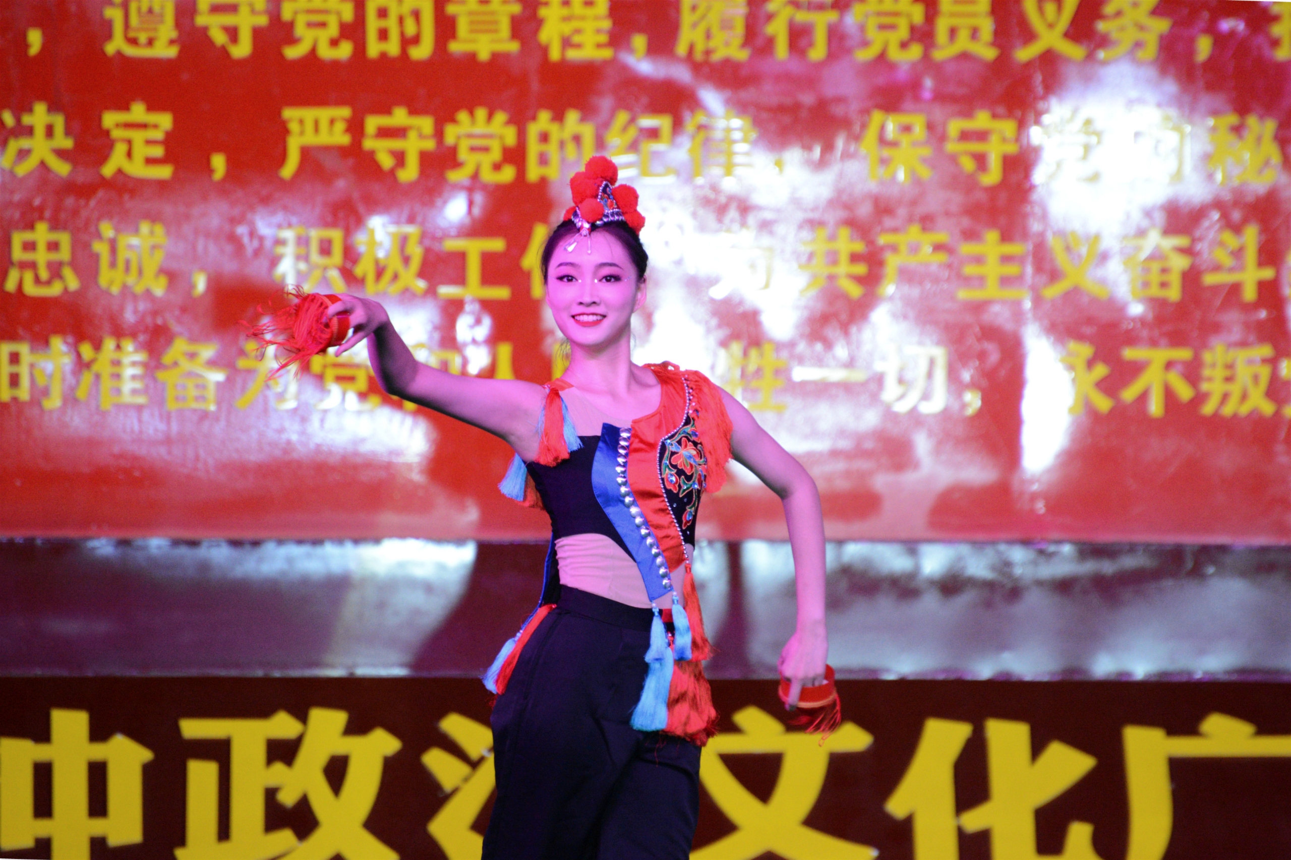 专场文艺晚会上,来自于上海戏剧学院暑期社会实践团的师生和信阳市文化旅游系统的文艺工作者们合作为革命老区何家冲的乡亲父老们带去了一场内容丰富,形式多元,精彩纷呈的综合性文艺演出。现场的节目从舞蹈到歌曲再到传统戏曲,每一个作品都倾注了创作者与表演者的热情与专注,台上演的精彩,台下掌声欢呼声此起彼伏,高潮迭起。实践团中来自于舞蹈学院中国舞专业的8位同学为本次文艺晚会带来了精心排演的女子四人舞《吉祥》、男子独舞《渡生》、女子群舞《采薇》、男子四人舞《英魂》和女子独舞《红蜻蜓》,精湛的舞技,优美的舞姿、用心的演艺,赢得了当地老百姓真挚地欢呼。;来自继续教育学院音乐表演专业的5位学生与专业教师石灵带来了3首由该专业负责人张重远老师领衔师生新编经典歌曲:男女对唱《红旗飘飘》、吉他弹唱《渔光曲》、合唱《同一首歌》,优美而现代的旋律打破了传统经典歌曲的固有节奏,让人耳目一新,学生们独特的嗓音与生动的演唱,老师用心的演奏与纯熟的技巧,获得了大家的肯定与掌声。
