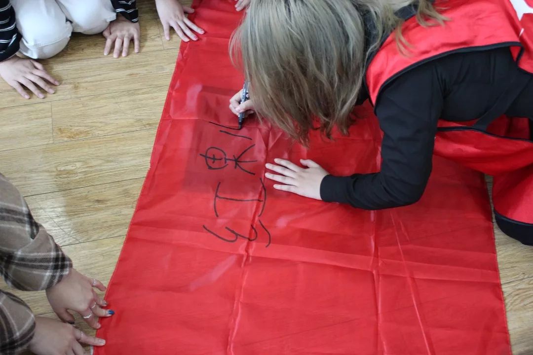 分组完成后,每组成员展开了激烈的讨论,设计队旗,排练队形,每一个成员都积极的参与进来。