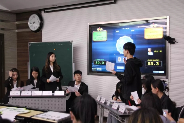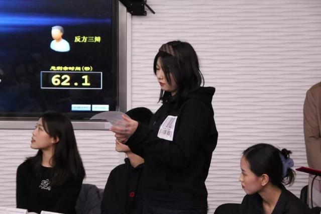 在攻辩环节中,整场比赛的氛围逐渐升温,而最为精彩的自由辩论则彻底将比赛赛程推至高潮。在比赛过程中,两支决赛队伍旁征博引、妙语连珠,声音洪亮、风度翩翩。