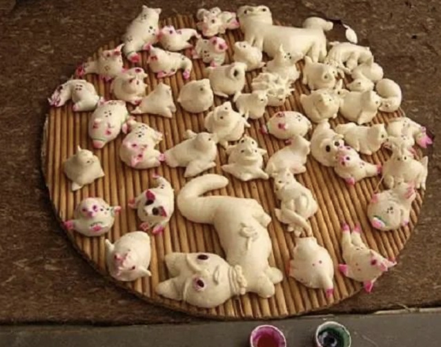 四川成都一带在清明节流行吃欢喜团。把炒米用饴糖或温糖水和成大小不一的米团,然后用线绳穿在一起,涂上各种颜色,称为“欢喜团”。