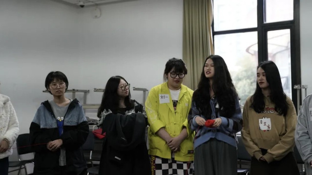 最后,心理委员们围成一圈,满怀笑意地分享着自己的感受和喜悦,并将手中的红线团抛向其他成员。细细的红线连成一张密密的网,联结着彼此的关系,也拉近了心理委员大家庭的距离。