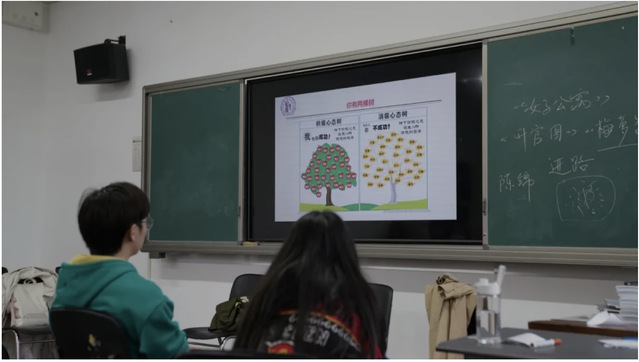 随后老师让大家自评自己的心态,进行“光谱测量”。一番排列后,大家站出了一副错落有致的“心态光谱”。向老师随后采访了几个分数队伍中的同学。满分心态的邱天琦同学幽默生动的心态自评为大家带来了阵阵欢笑,让大家留下了深刻印象。