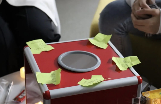 一场绝对安全的真心话坦白局,以他人为镜化解内心困惑。同学们作为参与者带来自己的焦虑写在纸条上放入盲盒,又作为旁观者为他人之焦虑提供建议。