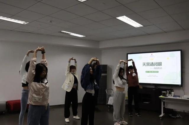 2021年4月16日11:50,由学生处主办,上戏朋辈心理互助中心组织的“天黑请闭眼——直面焦虑”活动,在昌林路校区在1号楼C区204室举行。本次活动带领者为20戏文邵博远和20广编汪诗淼,指导老师为学生处向碧华老师,共10名同学参与。
