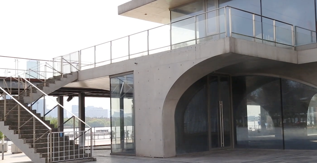 不仅仅是在外面的建筑结构和旧有的码头结合部分体现了时空感。地面以上的清水混凝土“伞拱”下的流动展览空间和地下一层传统“白盒子”式的展览空间由一个呈螺旋回转、层层跌落的阶梯空间联接,既原始又现实的空间和古代、近代、现代直到当代艺术的展览陈列,这种并置的张力,呈现出一种具有时间性的展览空间。