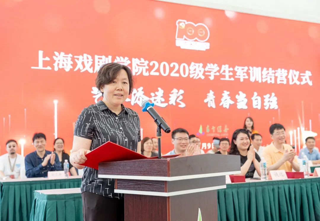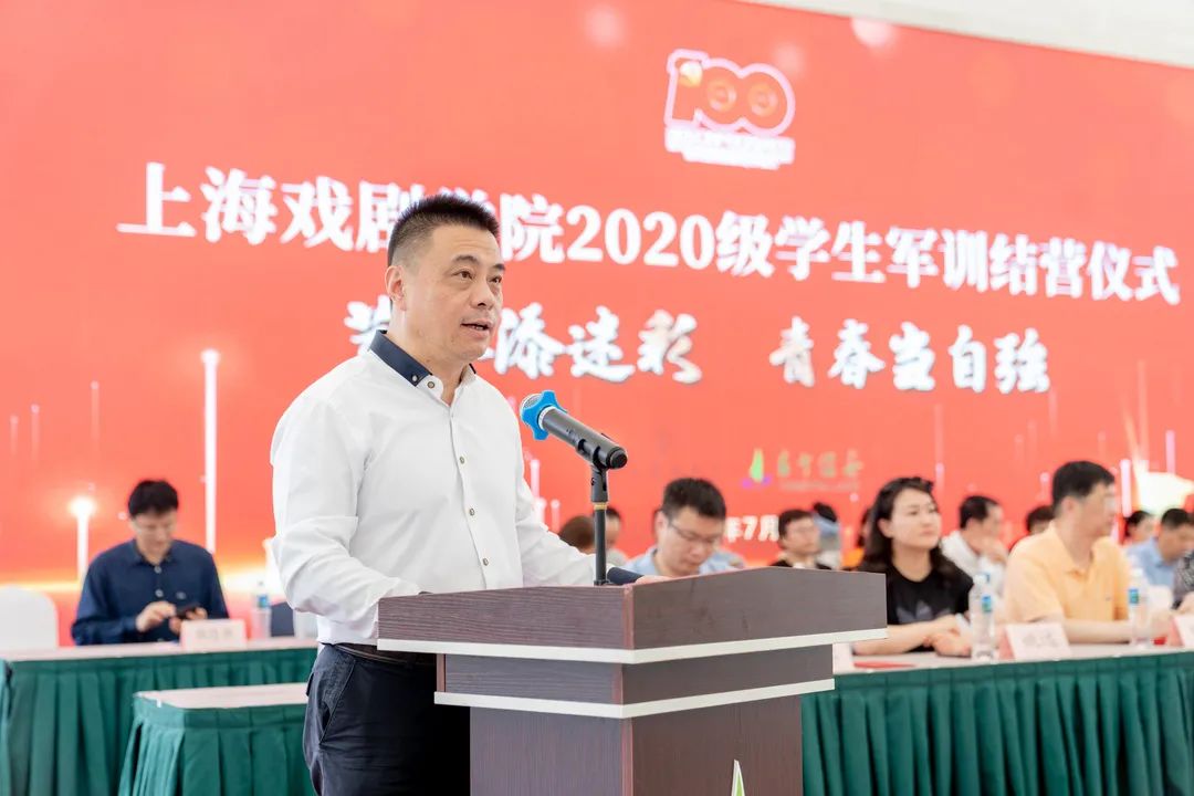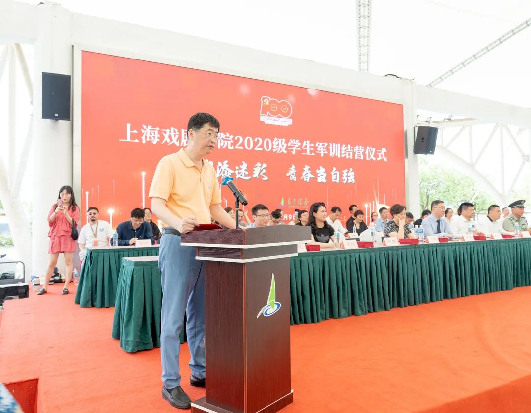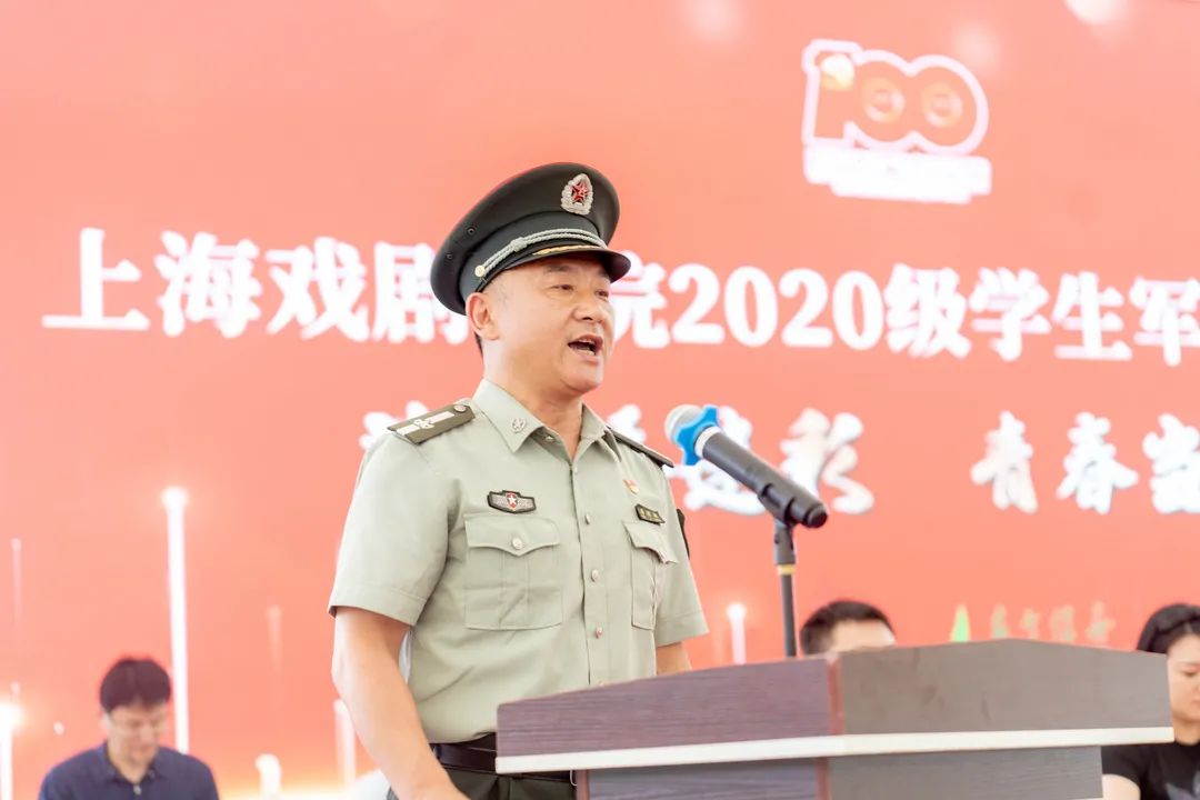 党委副书记、副院长张伟令代表上戏党政领导向全体承训官兵和工作在军训一线的老师们表示感谢和问候,并肯定了同学们在军训中展现出的良好风貌。