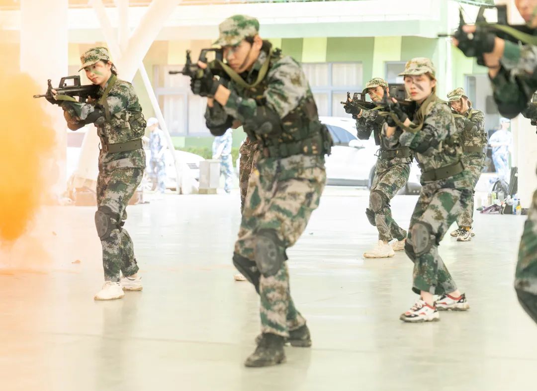军训成果汇报以丰富多彩的形式展开,包括拳术、刺杀操、特种战术以及旗语展示。