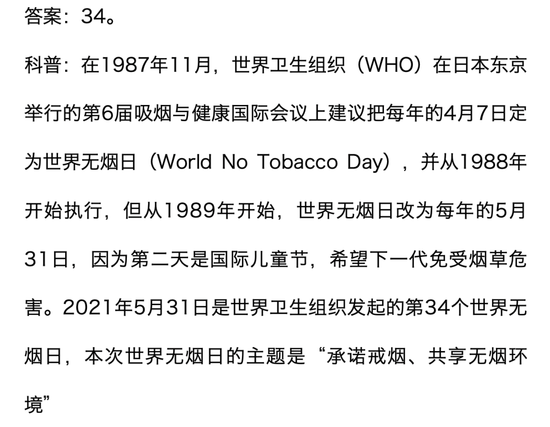你知道今年是第几个世界无烟日吗?