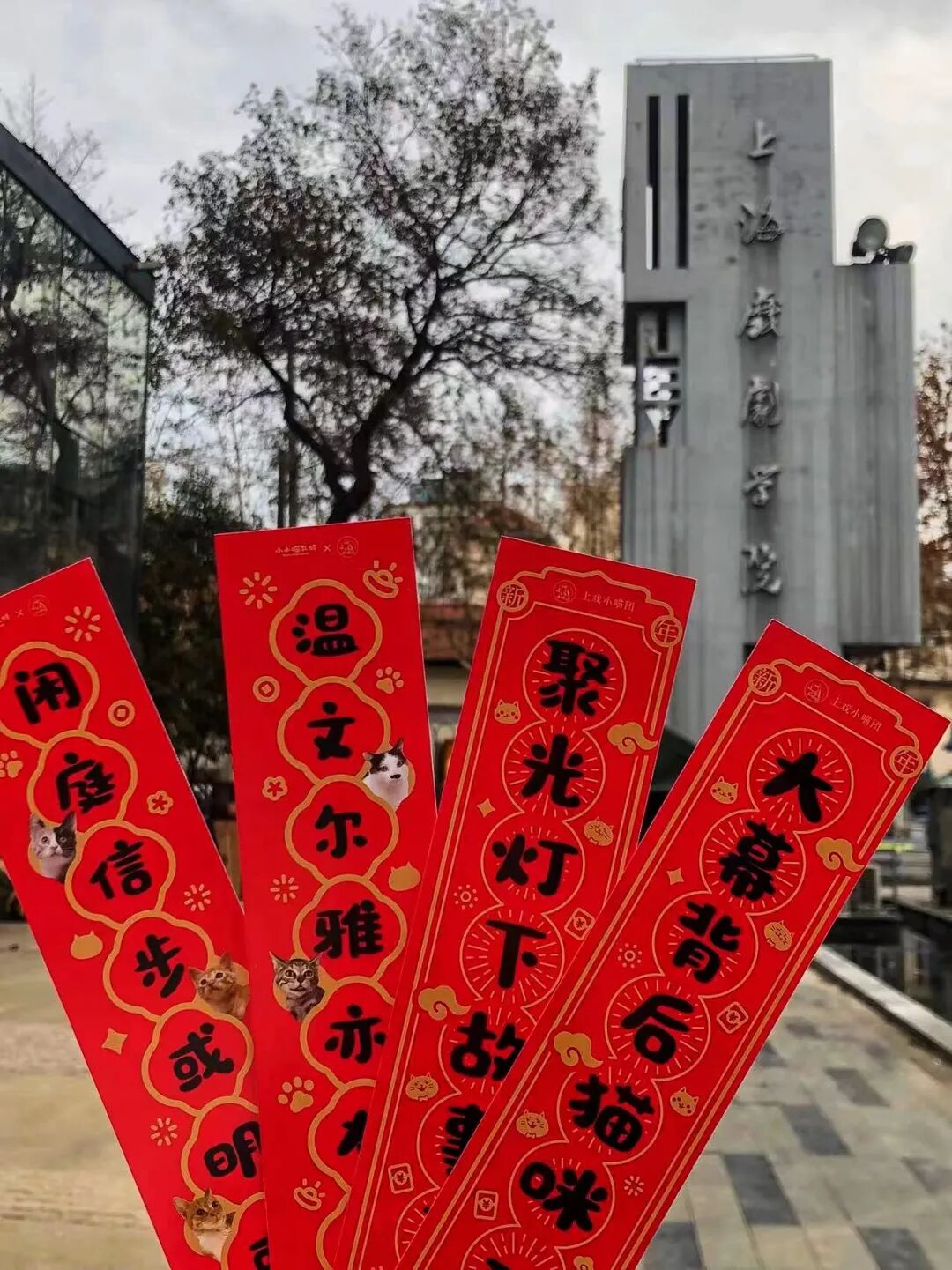 校领导慰问留校学生及坚守岗位的教职工“喵呜有戏”款春联将上戏校猫元素融入其中,令人暖意倍增,为传统的春节注入活力和可爱。留校的猫咪们也能一起过春节!