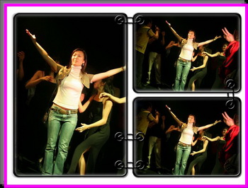 由于我年龄跟班级年龄最大学生只有3岁之差,就此被同学们幽默地称为“观音姐姐”。这个外号伴随了我带这个班15名学生四年的时间,也见证了师生之间四年深厚感情的历程……从刚开始因爱说而得名、到二年级的唠叨而名副其实、至三与四年级的“观音夺命吼”(在编导课中最怕被我喊而不敢偷懒),都使“观音姐姐”成为了老师和同学们共知的“雅称”。也因为课余时我会象朋友一样跟他们谈生活、谈舞蹈、谈自己读书时的经历……“观音”也成为了我爱唠叨的代名词。在“观音”的督促下,四年里全班同学创作舞蹈作品近50个。在学院黑匣子公演现代舞作品《这是我们的舞台》(05年1月),还完成了:大型后现代多媒体舞台剧《寻衣记》编舞助理及表演(04年3月)、舞剧《牡丹亭》的创作(05年2月)等等。