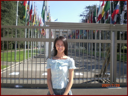 图为宋洁在日内瓦联合国万国宫前留念?xml:namespace>