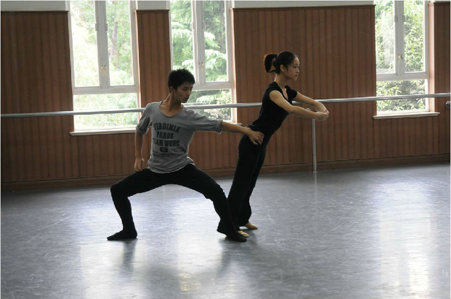 对于编导专业的学生来讲,动作呈现出的效果要比动作完成的质量更加重要,也就是说完成动作的意识要大于为了完成动作而动作,即用心再跳。EdwardClug老师讲“I don’t like the students only imitated my movement”,他希望学生明白“who are you and what do you present”。他希望学生是真的在跳,用自己的理解和感悟来表现那仅仅一分钟的舞段,可能不够整齐,也可能不够统一,但是是学生用心在表演,那就是他想要的,就像我们当下提倡的真实往往是最美丽的,面对舞蹈创作中的虚假情感和表演中的扭捏作态,这样的共识可能更应使我们保持创作的操守,不应流于媚俗。外教相对开放的教学思路给了学生们一定的编创和表演空间,在汇报过程中,发现他们对动作的处理很有趣味性,尤其是双人舞中力的对抗与配合,以及巧妙的动作连接,会使人惊叹于编者的智慧,也更好的诠释了舞蹈本体的价值。