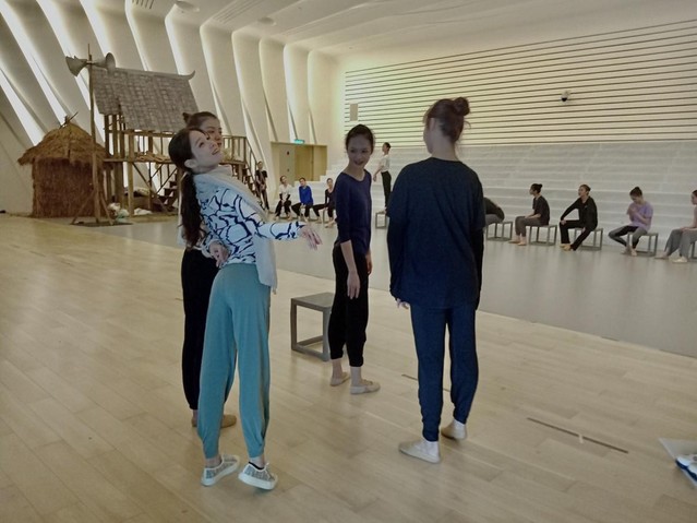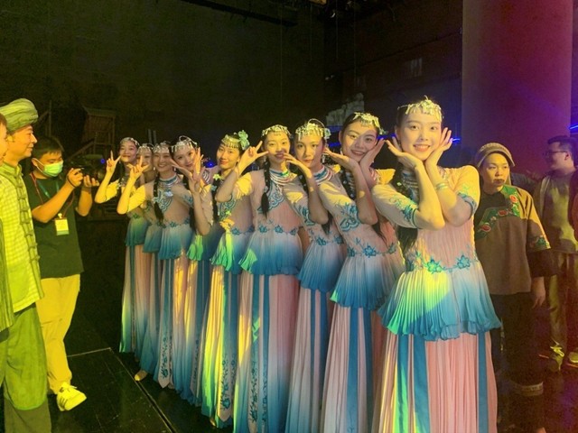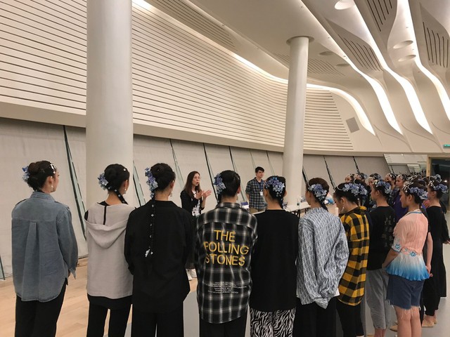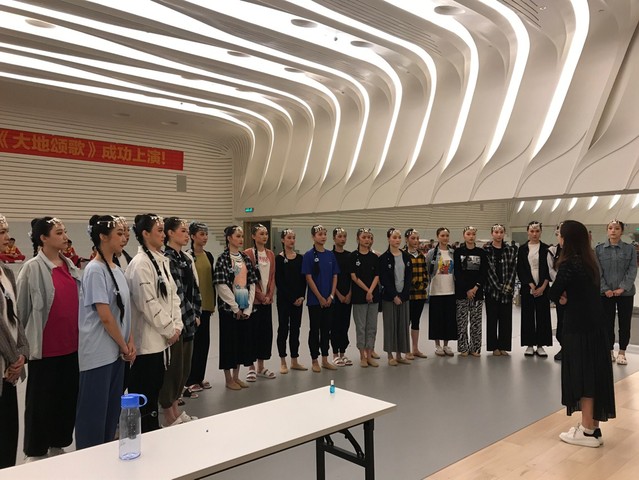 师生们在收到学院领导关于演出的指示后第一时间统计筛选参演人员名单,确认参演人员后学院立马组织学生们购买各地直达长沙的车票与机票,体现了学院各级领导干部及老师一贯雷厉风行的高效作风。24位中国舞的同学在杨新华副院长、带队老师刘建明的带领下于9月1号从全国各地抵达长沙,紧接着9月2号投入紧张、高效的排练当中。第一天学动作,第二天排队形,第三天上舞台连排,这些都考验着我们上戏学子的舞台应对能力与高效快速的学习能力。学院也选派燕晓霞、刘震杰、曾逊倪等专业老师先后前往长沙负责学生日常的专业教学和排练工作。