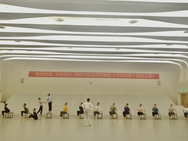 以全面反映湖南精准扶贫历程为题材的大型史诗歌舞剧《大地颂歌》近日在湖南长沙梅溪湖国际文化艺术中心首演。该剧由中共湖南省委宣传部主办,湖南省演艺集团、湖南广播影视集团等联合出品,上海戏剧学院舞蹈学院24位同学受邀赴长沙参演其中的舞蹈《马桑树儿搭灯台》。