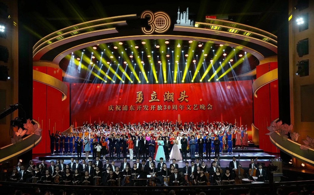时值浦东开发开放30周年之际,《勇立潮头——庆祝浦东开发开放30周年文艺晚会》于11月13日在上海大剧院隆重举办。晚会由中共上海市委、上海市人民政府和中央广播电视总台主办,上海市浦东新区区委、浦东新区人民政府、上海市委宣传部、浦东新区区委宣传部承办,上海广播电视台承制。