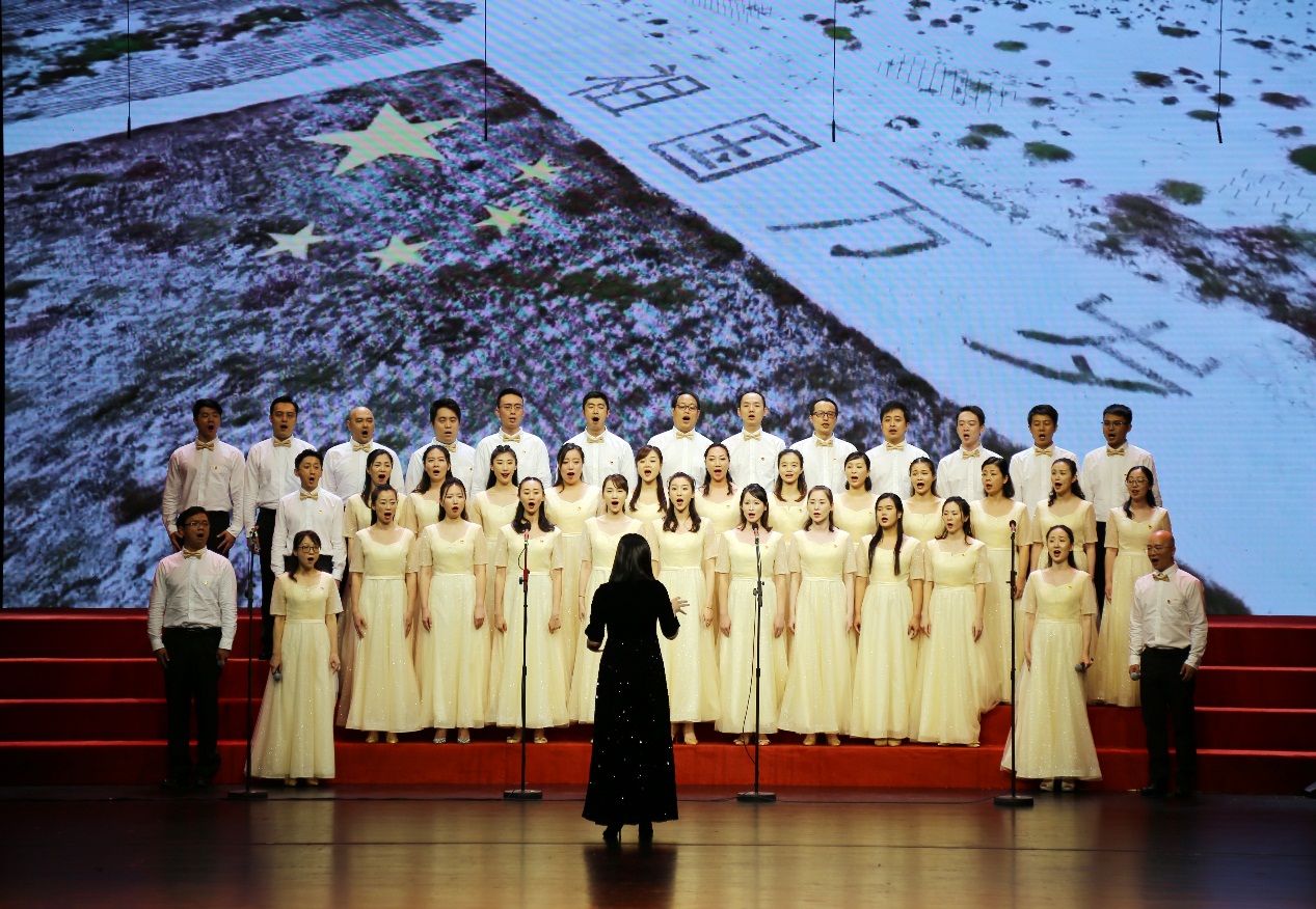 主题活动的下半场为主题歌会,各基层党组织以嘹亮的歌声庆祝党的百年华诞。由舞蹈学院党总支书记张麟、副书记徐辉带领的41名党员教师和14名舞蹈编导专业学生组成的舞蹈学院合唱队,精神饱满、团结一致,以一曲《请放心吧!祖国》点燃全场。这首歌曲旋律悠扬、激情昂扬,唱出了边防战士无私奉献、守护祖国锦绣山河的豪情壮志,也唱出了广大党员不畏艰险、冲锋在前的勇气和决心,获得了在场观众的热烈掌声。全校共有14支队伍参加了本次歌会,舞院师生凭借这首《请放心吧!祖国》获得了“歌声嘹亮奖”,党总支副书记徐辉作为代表上台领奖。